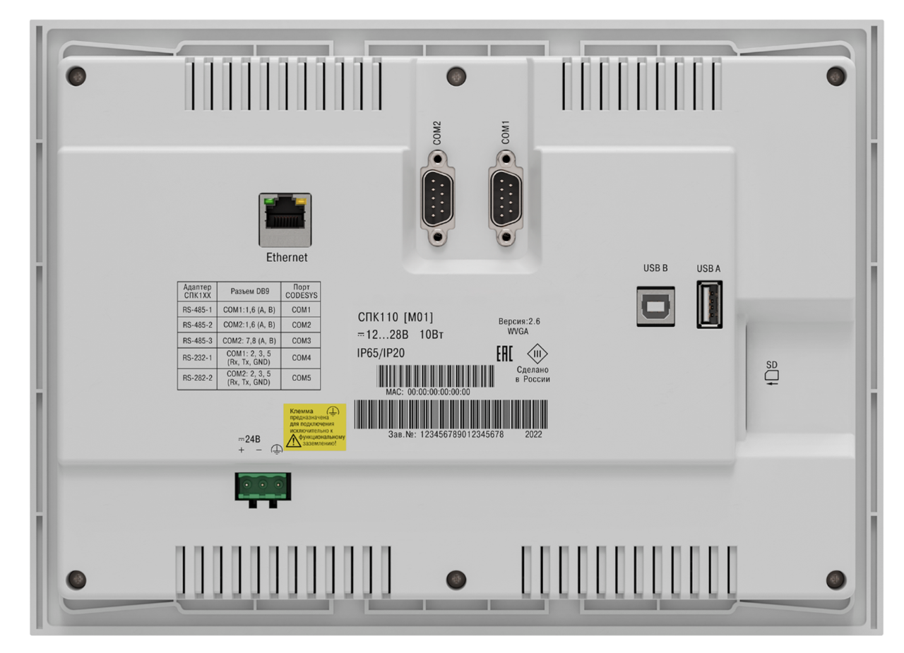 - Широкий набор коммуникационных интерфейсов: Ethernet, 3×RS-485, 2×RS-232, USB Host, USB Device, слот для SD-карт.